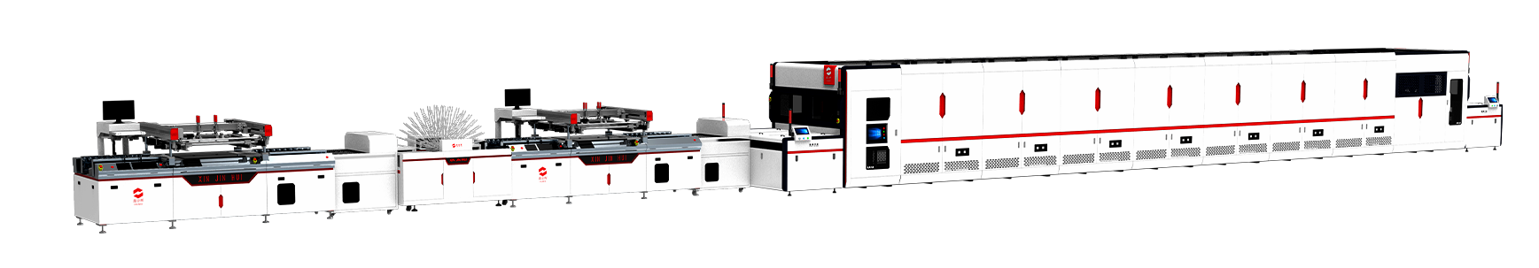 全自動特大板阻焊絲印烘干生產(chǎn)線解決方案,主要由特大尺寸pcb板,智能油墨樹脂塞孔機、自動阻焊絲網(wǎng)印刷機、阻焊預(yù)烤絲印烘干懸吊式隧道爐組成,實現(xiàn)3道工藝制程全自動生產(chǎn),可節(jié)省人工6-8人,分鐘產(chǎn)能高達3~5片,節(jié)能省電智能高效。